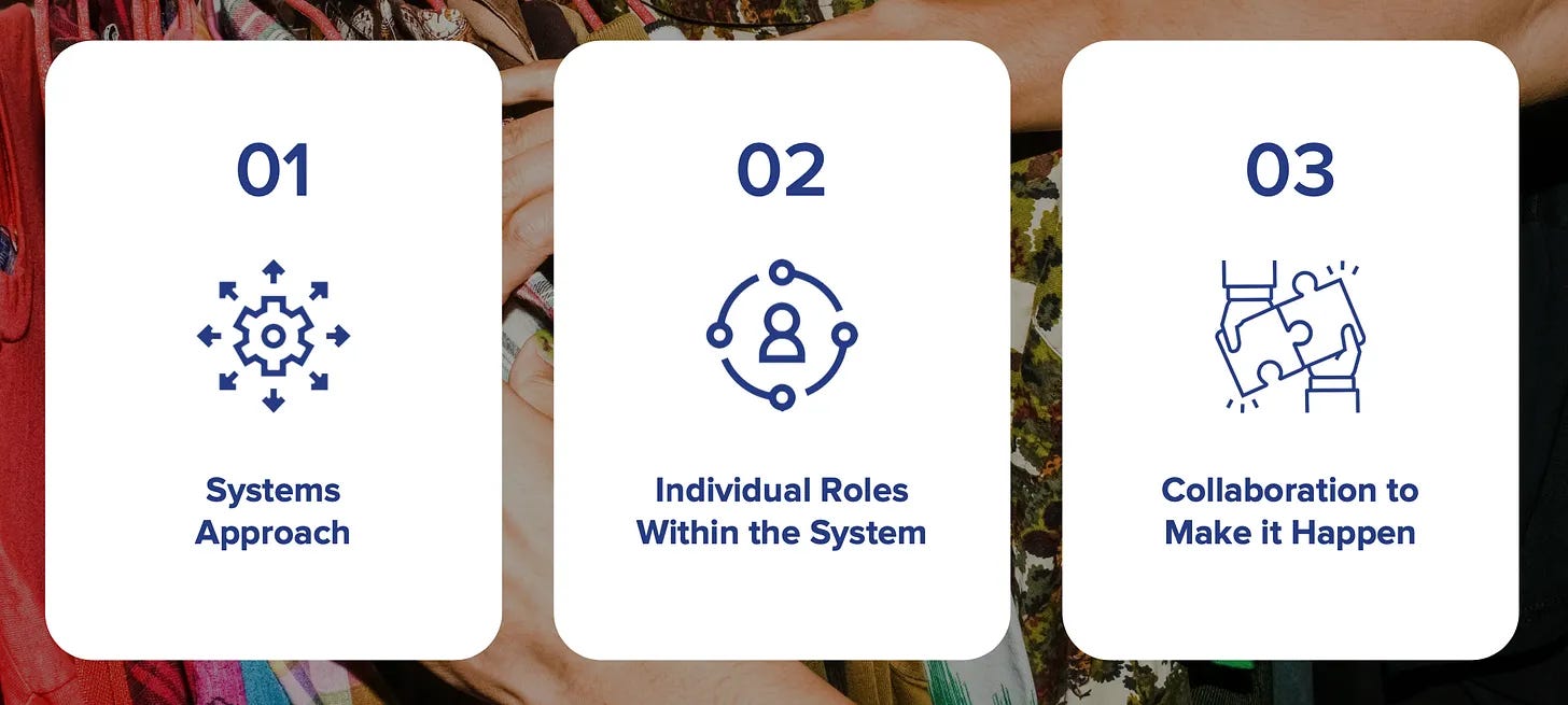 Systems change and individual change are not mutually exclusive, they are interdependent. It feels like an obvious point, but it’s one that is too often lost between the cracks of this debate. Systems change requires action from businesses and governments, and in both cases that requires actions from individuals. On the flip side, enabling conditions need to exist for individuals to act.