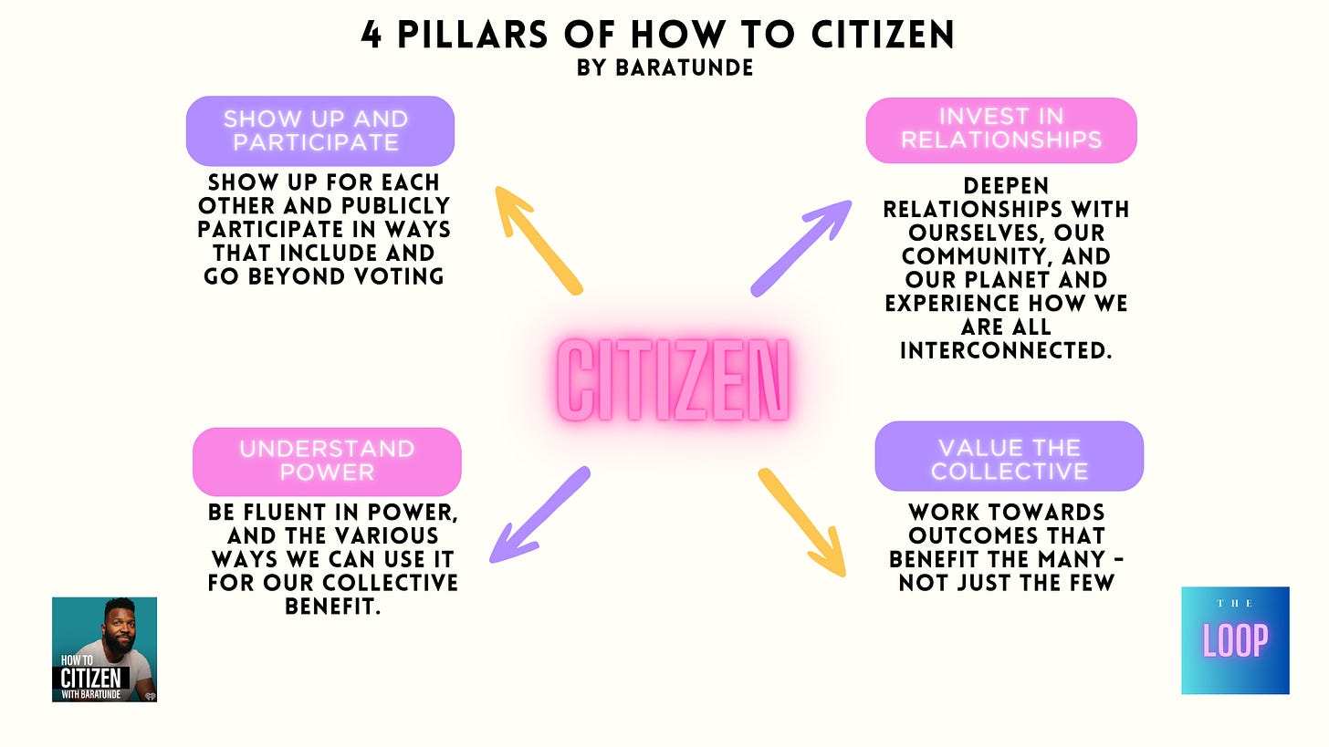 Baratunde neatly sets out four areas of thinking that can help us turn the citizen frame into tangible action, whatever role we are fulfilling and whatever system we are operating in.